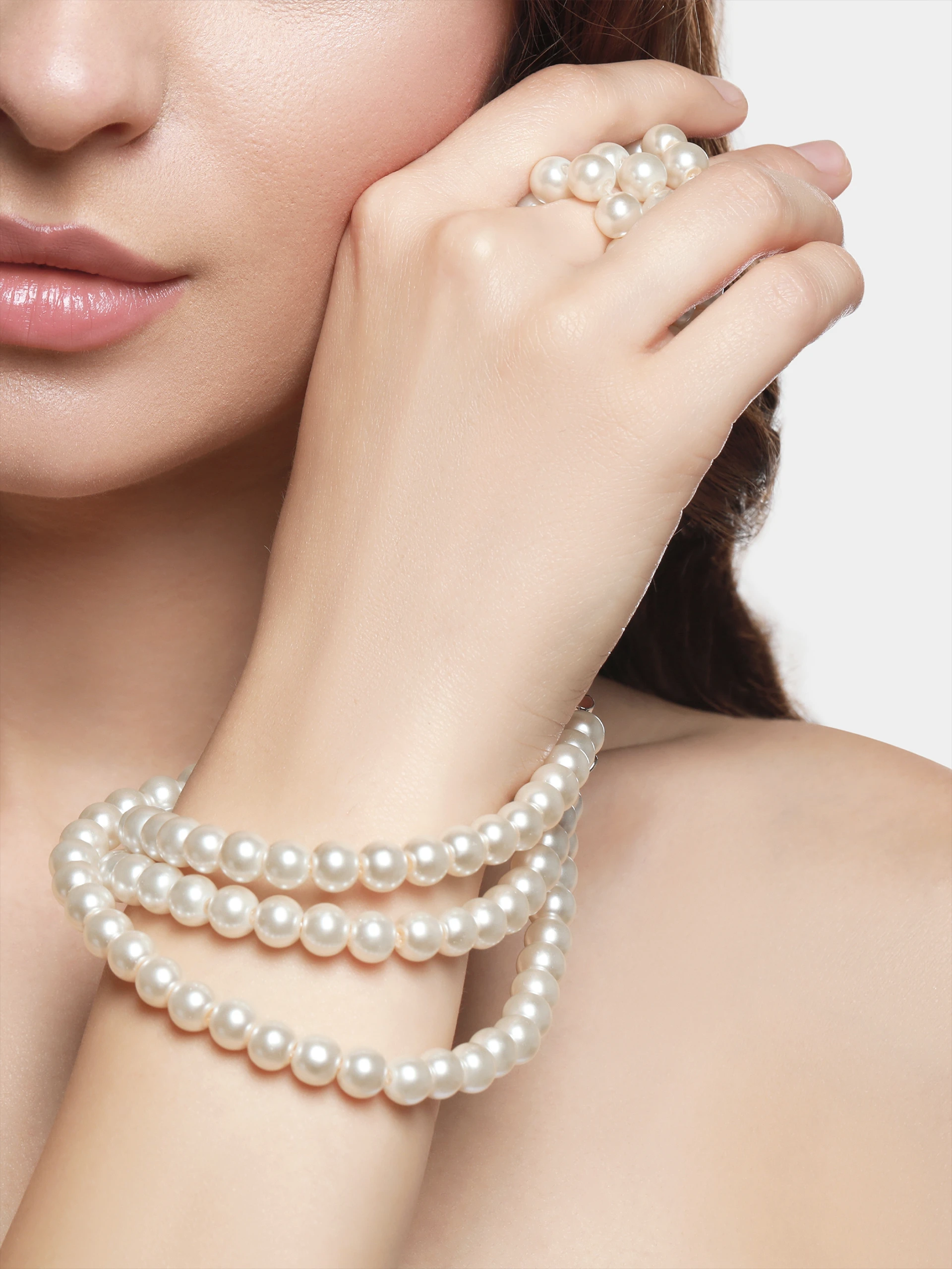 The Neo Pearl Necklace elevates classic sophistication with a contemporary edge. Featuring multiple delicately layered strands of luminous pearls, this versatile necklace effortlessly complements both casual ensembles and formal attire. Designed for seamless transition from daytime charm to evening glamour, it’s the perfect accessory to redefine your everyday elegance.