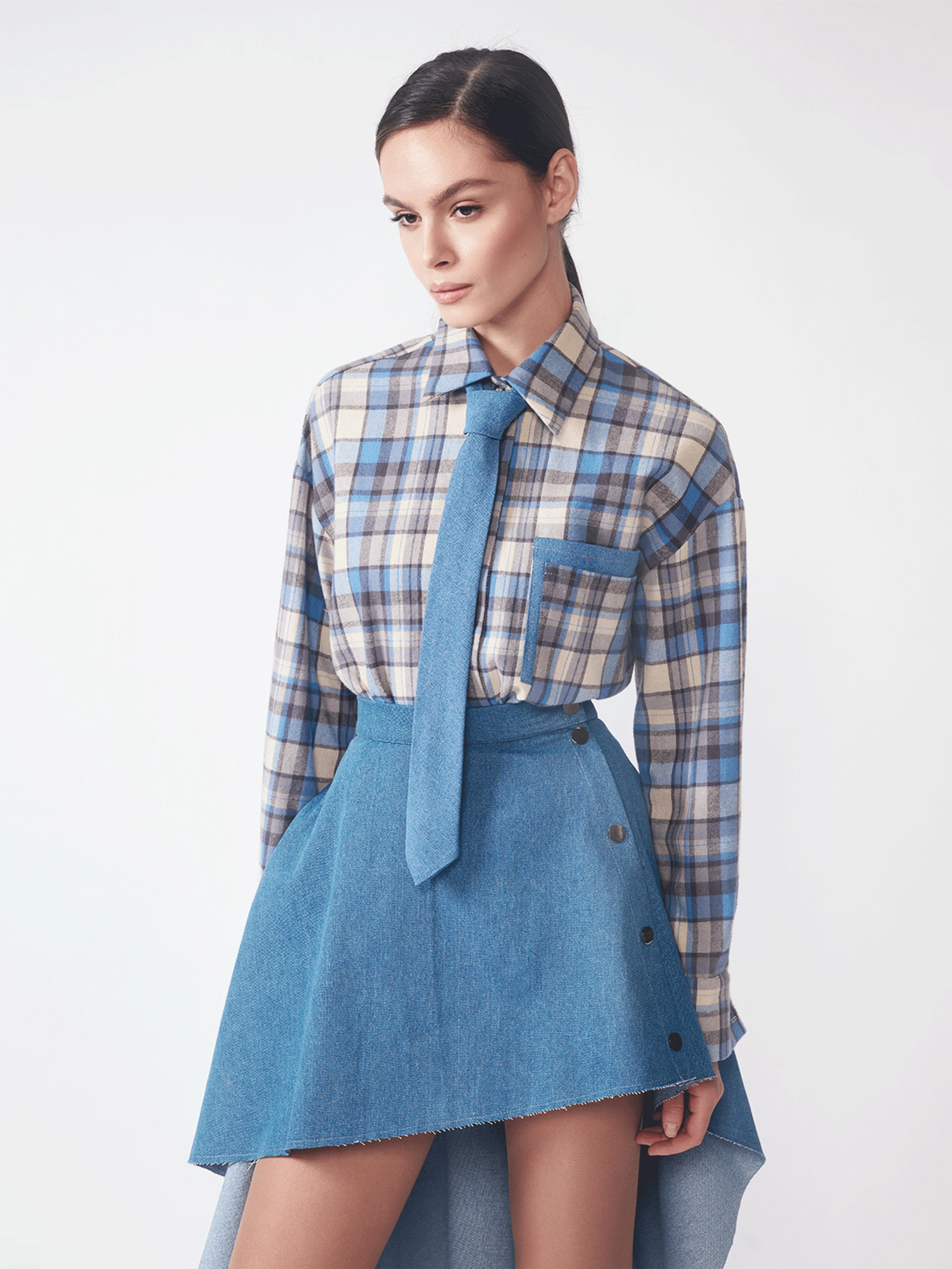 The St. Trinians Shirt blends vintage schoolgirl charm with modern versatility. Designed in a soft plaid of gray, blue, and light brown, it adds a preppy twist to your everyday wardrobe. The relaxed silhouette makes it ideal for layering over turtlenecks or pairing with jeans for a casual weekend look. Whether worn buttoned-up or open over a tee, this shirt strikes the perfect balance between playful and polished.